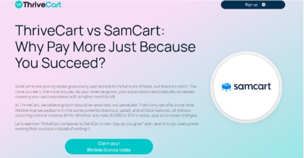 ThriveCart is a good SamCart alternative for its $495 lifetime pricing on the base platform. While most platforms charge recurring monthly fees, ThriveCart’s one-time payment offers exceptional long-term value for selling online courses and digital products.