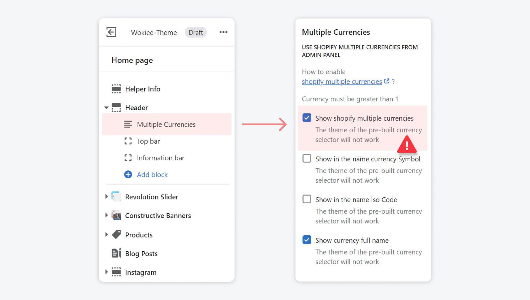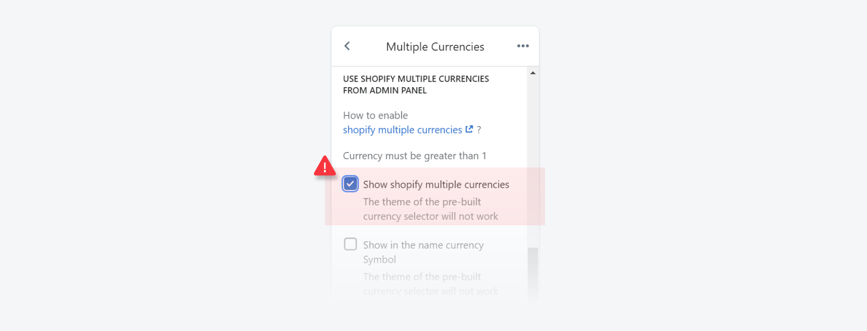 Enable Show shopify multiple currencies - Enable Show option Show shopify multiple currencies