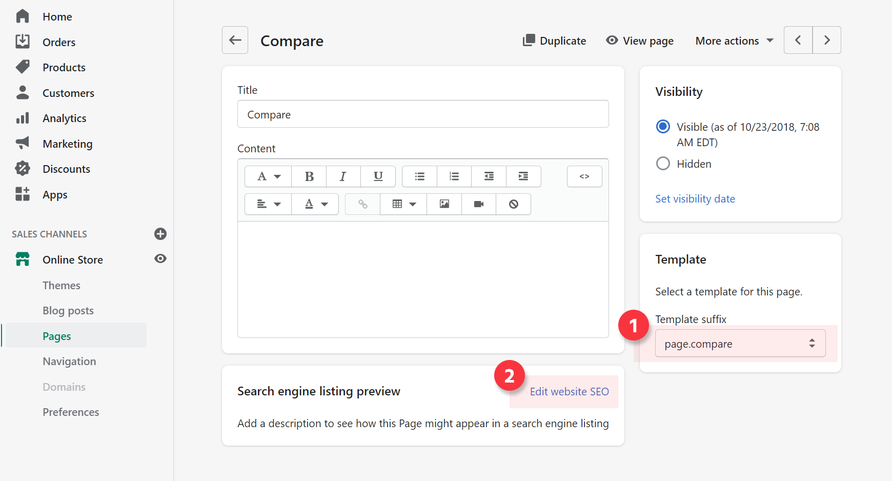 - Access your Shopify admin panel and click the Online store. Choose the optionPages