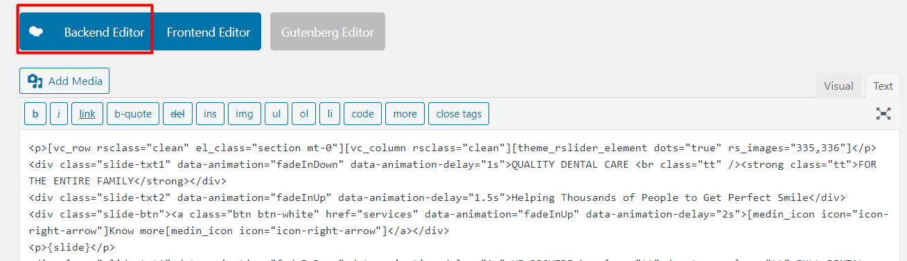Go to Pages, Doctor timetable page, activate the WPBakery composer if it isn’t activated.