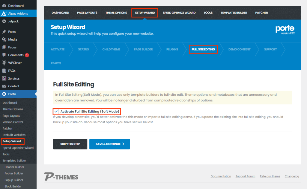 The Full Site Editing (Soft Mode) feature is a major evolution in how you design and customize your website using the Porto Theme.