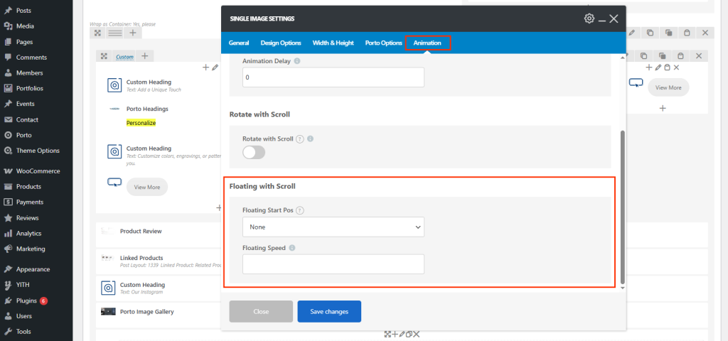 Porto Floating Effects allow you to add interactive, mouse-based motion effects to elements in your layout. When users move their mouse cursor across the page, selected elements shift subtly to create a dynamic parallax-style movement. This feature enhances visual depth, making sections feel more modern and interactive.
