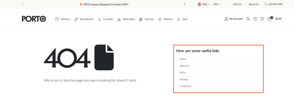 This method lets you edit the main content section of the 404 page while keeping Porto’s default page layout structure.