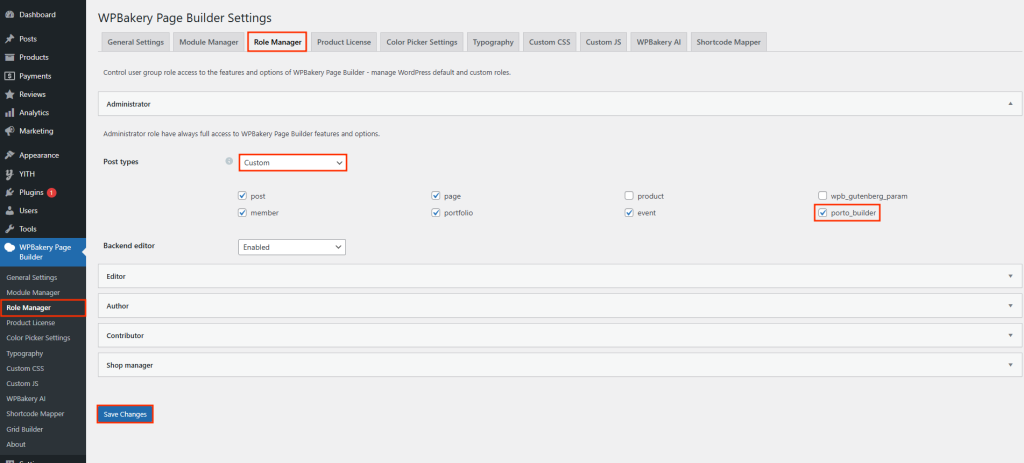 - Navigate to WPBakery Page Builder > Role Manager.