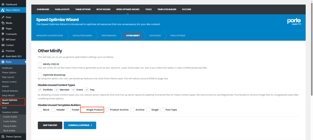 - Navigate to Porto > Speed Optimize Wizard > Other Minify