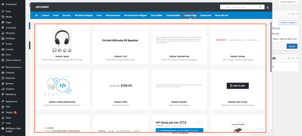 When editing with Elementor or WPBakery, you’ll find a wide 19 of Porto Single Product Elements designed for product pages, such as Product Title, Product Gallery, Short Description, Price, Add to Cart, Tabs (Description, Reviews, etc), Related or Upsell Products