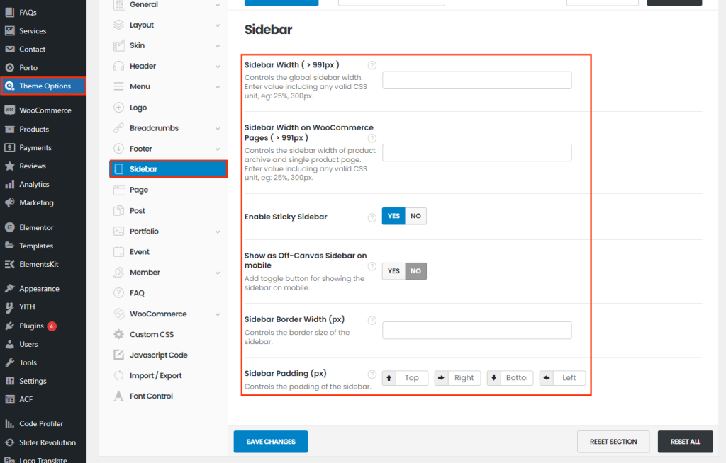 Porto > Theme Options