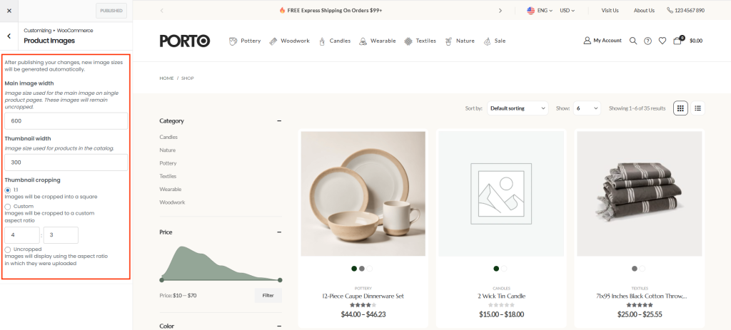 , or a Porto preset). WordPress then uses the closest available image size generated by WooCommerce.