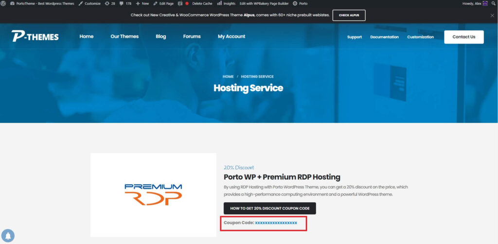If you are using hosting services such as Premium RDP and WPX for your website, and have chosen to use the Porto WordPress theme, then you are in luck! You can now receive a discount coupon code for your hosting services. This discount code can help you save money on your monthly hosting fees, allowing you to put more of your budget towards other important aspects of your website.