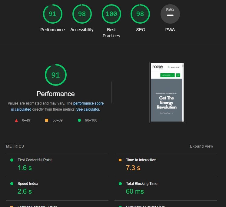 Porto provides Speed Optimize Wizard to improve the site speed. You can make Google Lighthouse general indexes higher as you like but the performance is not. After compiling Speed Optimize Wizard, how can you increase the poor Google Lighthouse Performance on desktop and mobile also. Describe this Faq with insurance Demo. As a direct metric of site performance, not a lot – FCP & LCP
