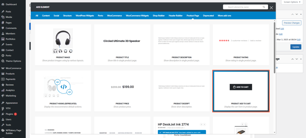 - From the Porto Single Product Elements section, drag Product Add to Cart into your product layout.