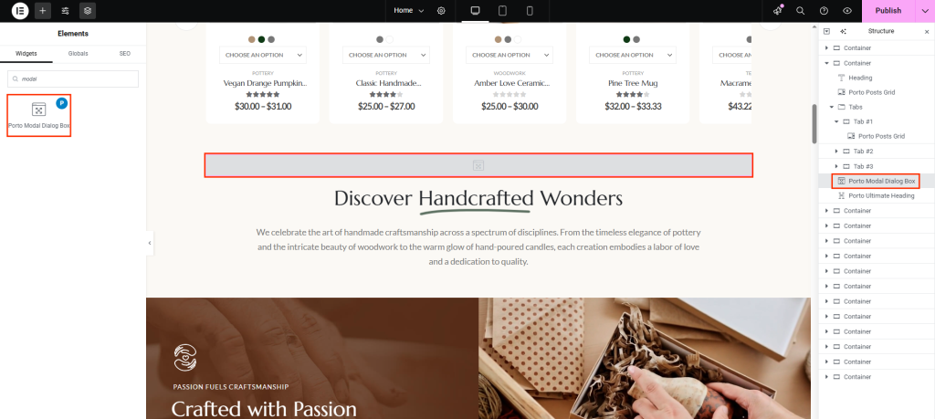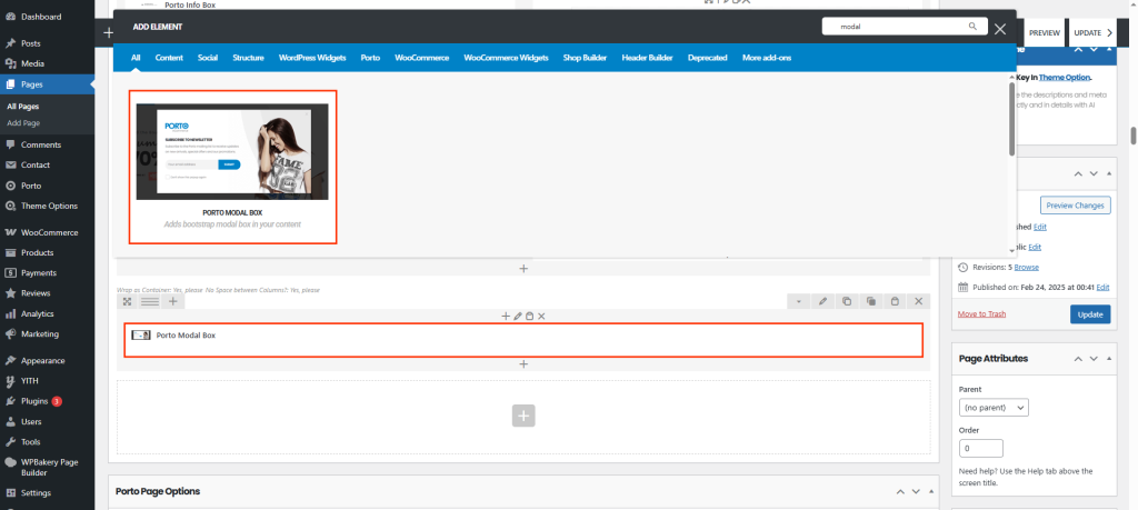 The Porto Modal Dialog Box element allows you to display popups or videos in an elegant modal window. This feature is ideal for showcasing announcements, promotional banners, embedded videos, or any custom HTML content within a popup layout.
