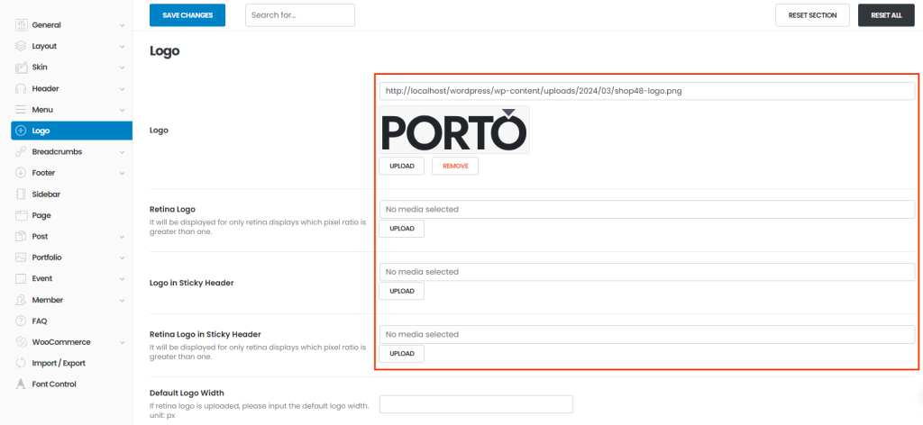 You can upload a high-quality logo for the sticky header here, ensuring that the pixel ratio is greater than 1 for optimal display.