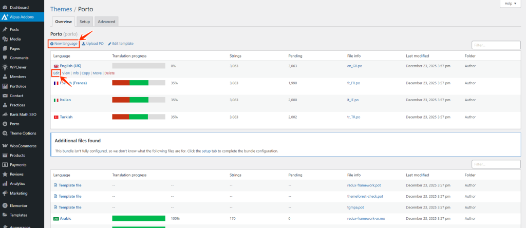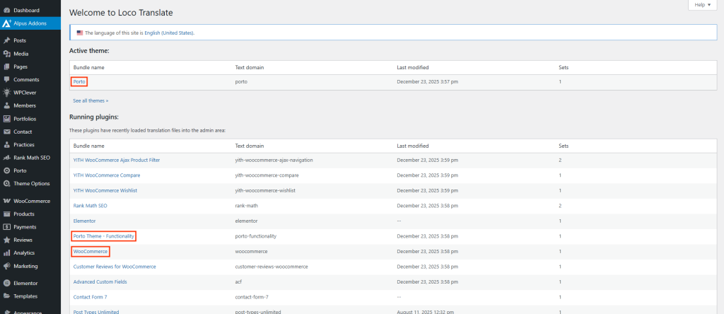 The Porto theme fully supports translation using the Loco Translate plugin, allowing you to translate theme strings, WooCommerce text, and supported plugins directly from the WordPress dashboard—without editing files manually.
