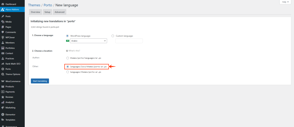 This prevents translations from being overwritten during theme or plugin updates - Click Start Translating