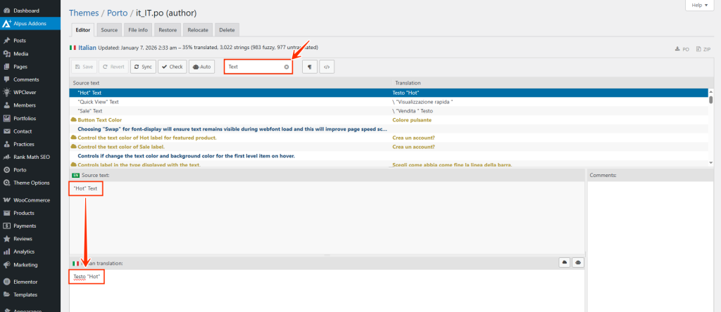 Before translating—or after any Porto, WooCommerce, or plugin update