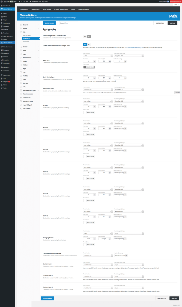 Typography defines the overall tone and readability of your website. Porto provides a powerful typography configuration panel where you can manage global and detailed font settings for your entire site. You can access these settings by navigating to Porto > Theme Options > Skin > Typography