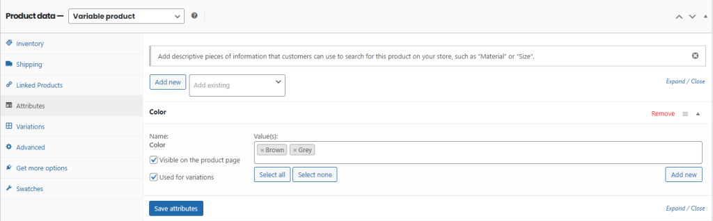 - Edit a product and go to the Attributes tab.
