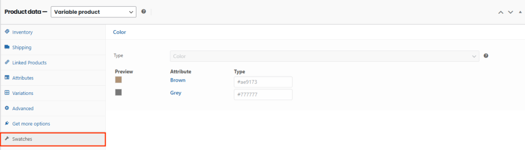 On the product edit page, Porto also provides a Swatches tab.