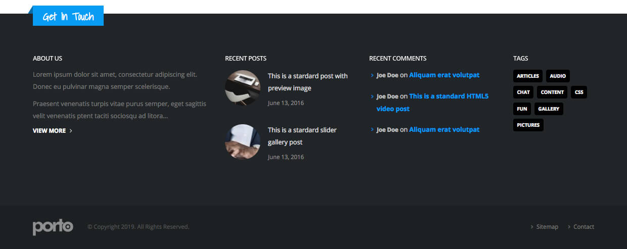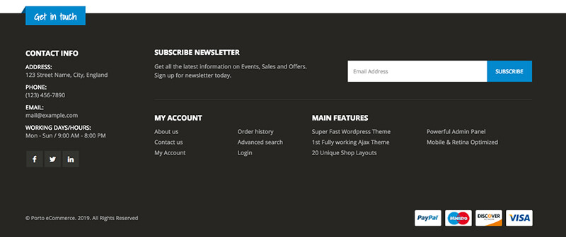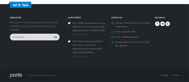 In Porto 6.0, templates builder is newly added to create and modify the whole site including footer dynamically using page builders. With Porto footer builder, You can build the footer dynamically in any layout. After you create footer, you need to set display condition where you want to display and select “Footer Builder in Porto Templates builder” in Porto. And you are now limited more by your imagination than anything else.