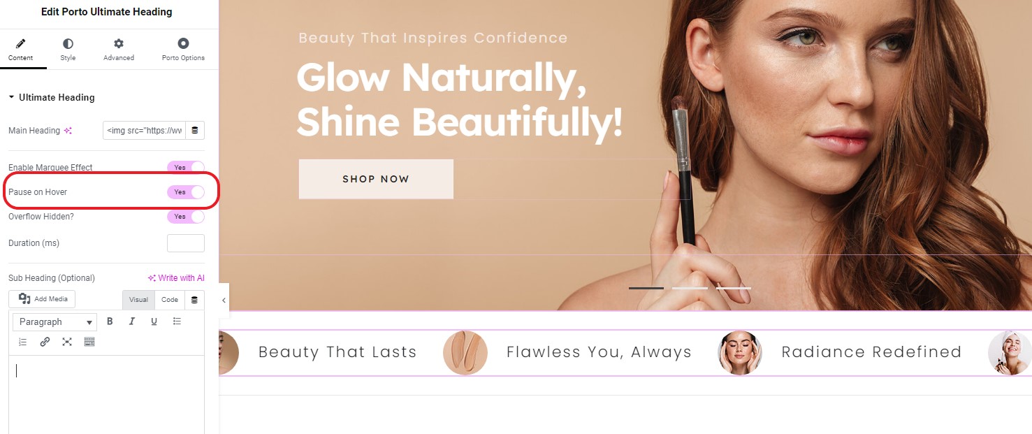 - Added: Pause on Hover option of Marquee to Porto Ultimate Heading