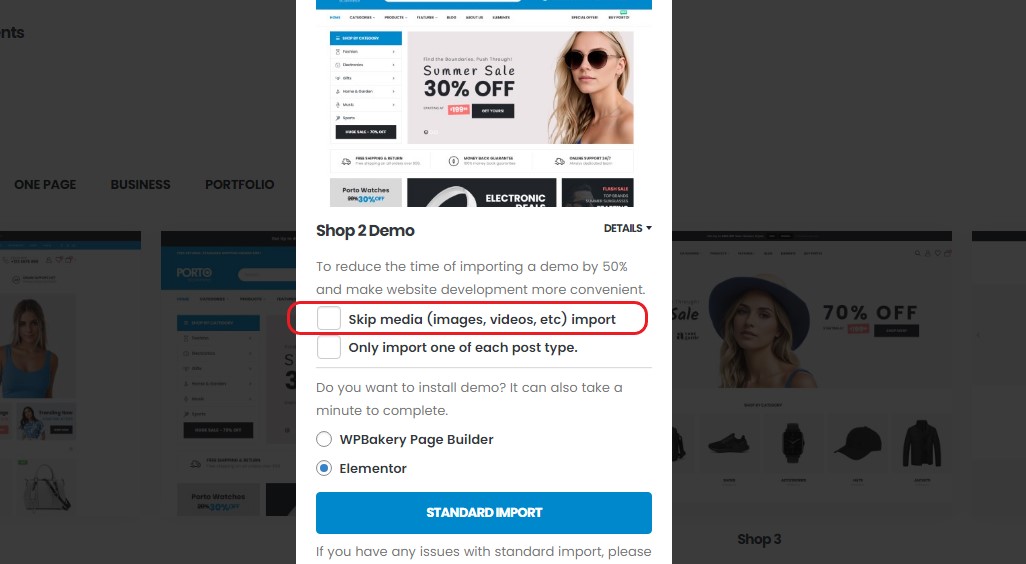 To make site development easier, unnecessary media is skipped during import, resulting in a 70% reduction in importing time.