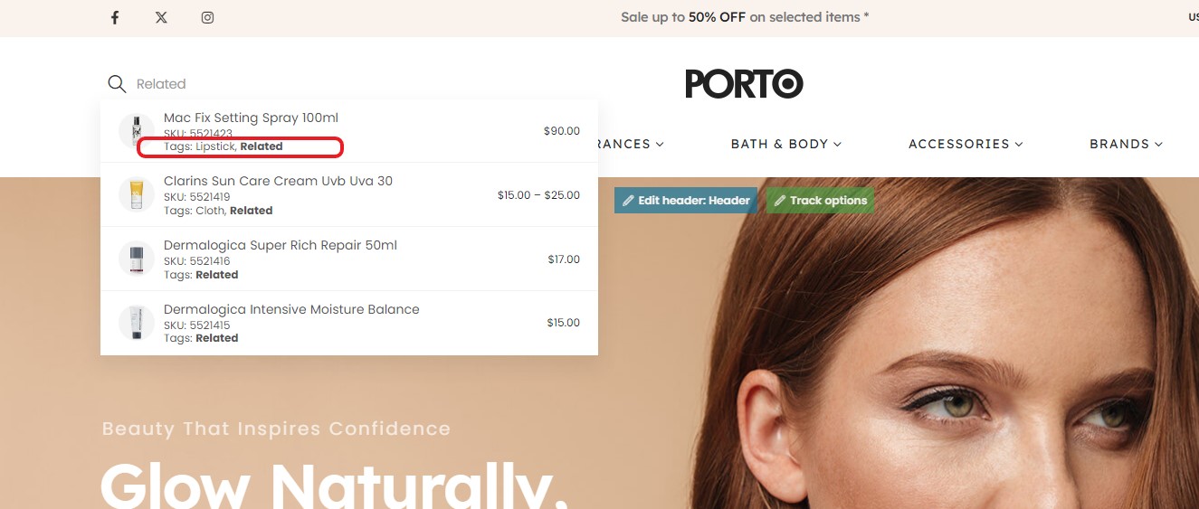 - Updated: Style of tag or sku on product lists of live search